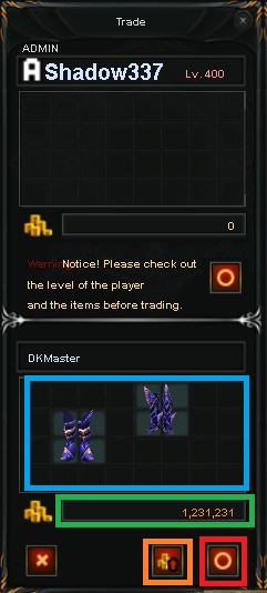 Se abrirá una ventana dividida. La parte superior es tu inventario de trade y la inferior el del otro jugador.